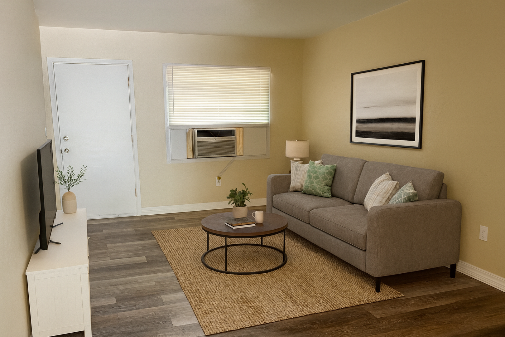 The floorplan is smartly designed with a spacious living room on one side and an equally sized bedroom on the other. Plus—because everyone needs more storage—there’s a generously sized hallway closet.